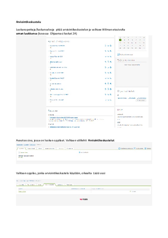 Arviointikeskustelun tallentaminen wilmaan.pdf Jaa Sulje Tämän tiedoston tekstivastine: (tyhjä tekstivastine) Arviointikeskustelun tallentaminen wilmaan.pdf 457.1 kt