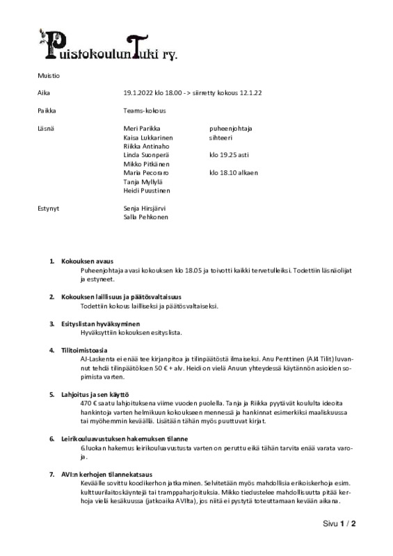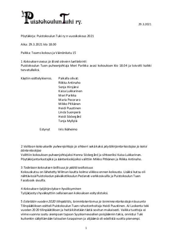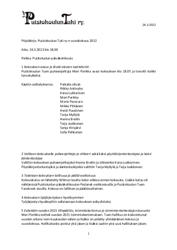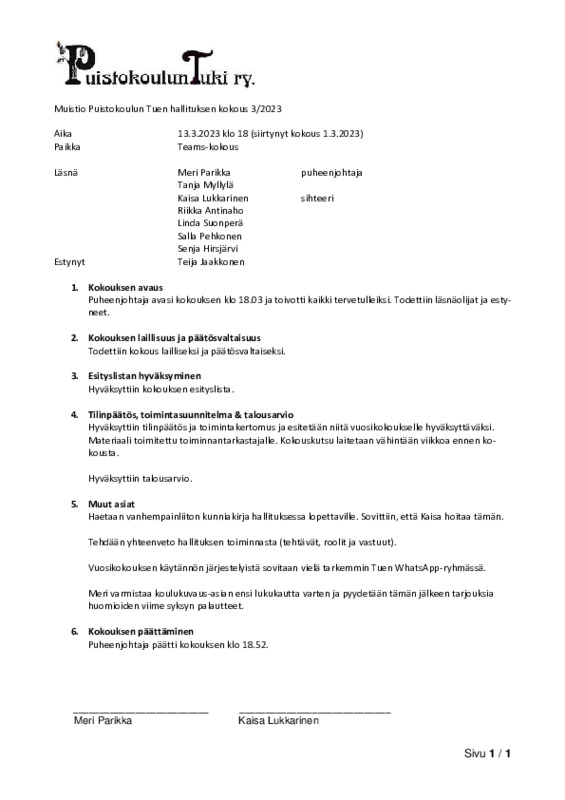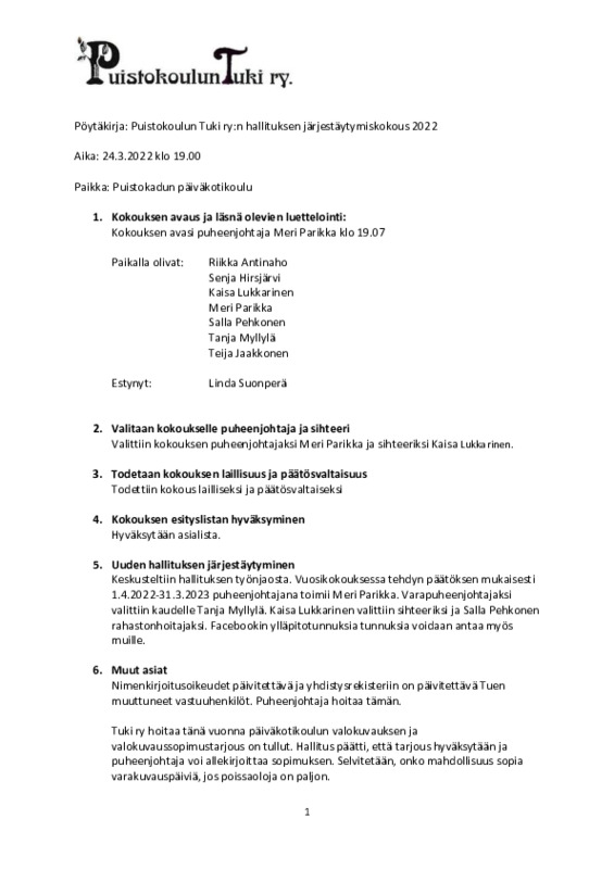 Järjestäytymiskokouksen muistio 20.3.25