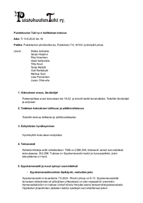 Muistio 13.8.2024