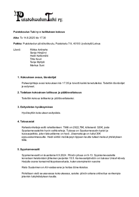 Muistio 14.8.2025