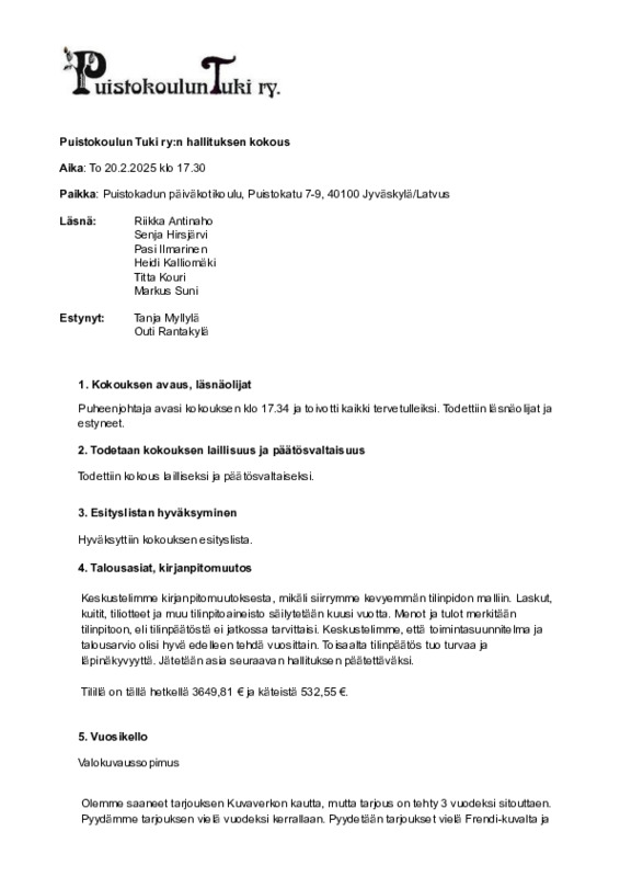Vuosikokouksen muistio 2025