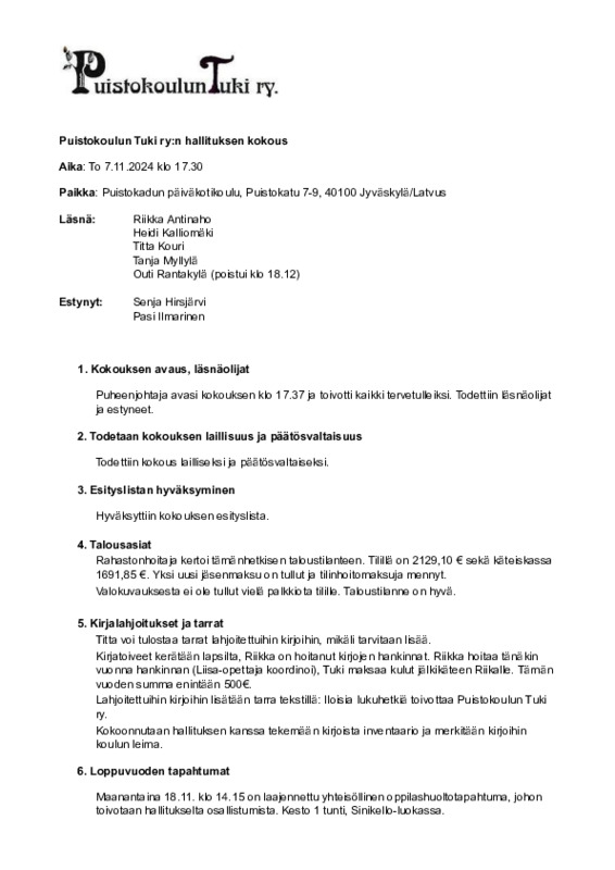 Muistio 7.11.2024