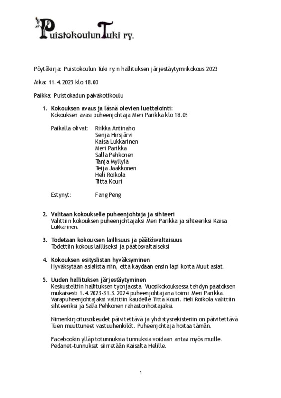 Järjestäytymiskokous 11.4.2024
