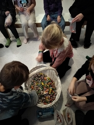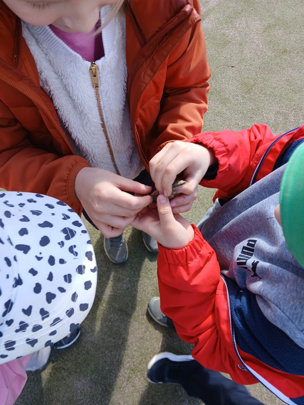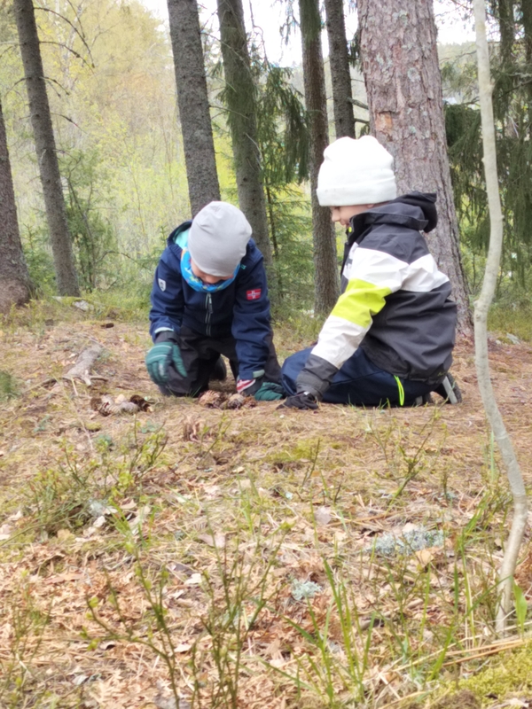 Under ulkoluokkapäivä spelade vi parvis, enkelt och roligt med endast kottar och en tärning