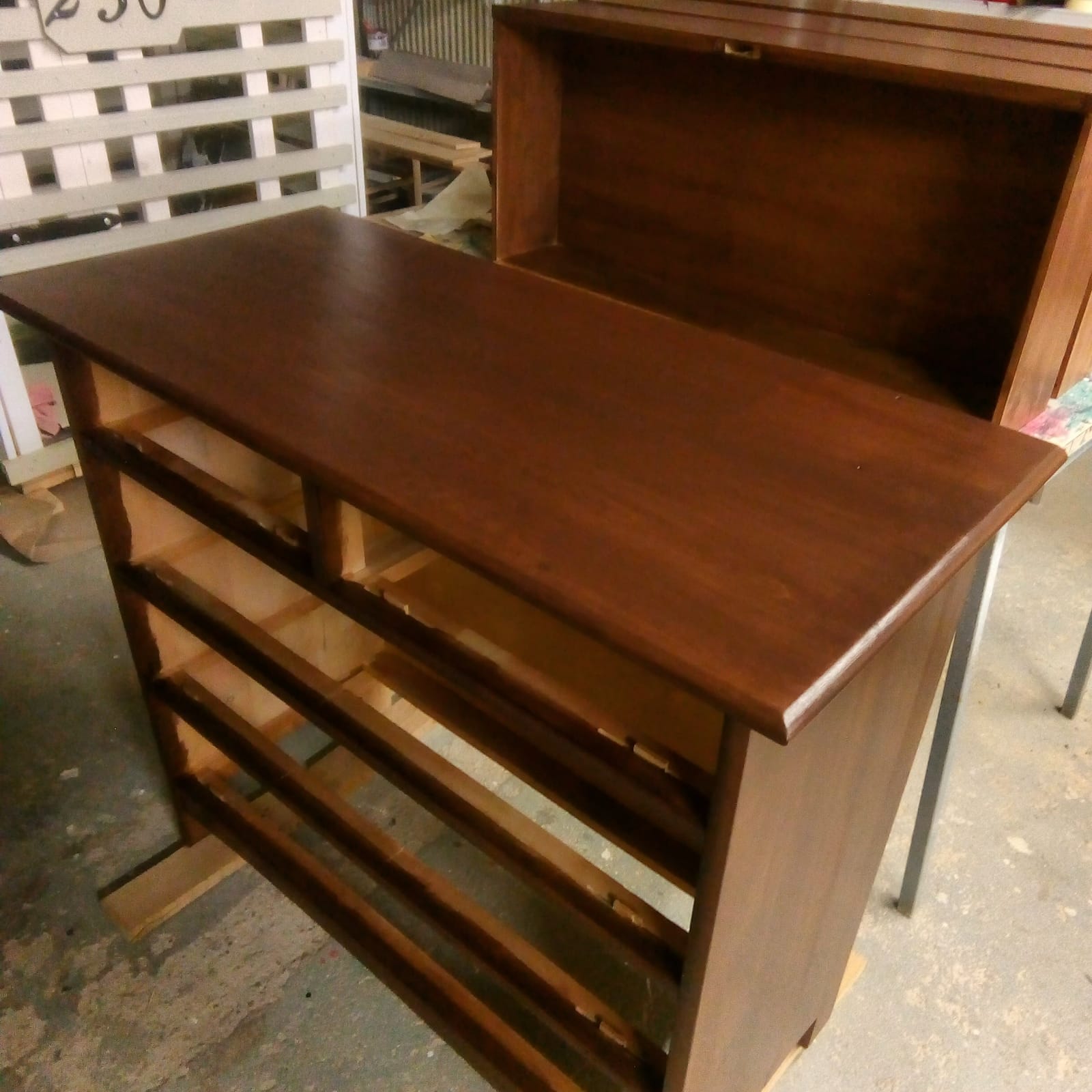Tämän kuvan tekstivastine: Puusta tehty piironki valmistumassa