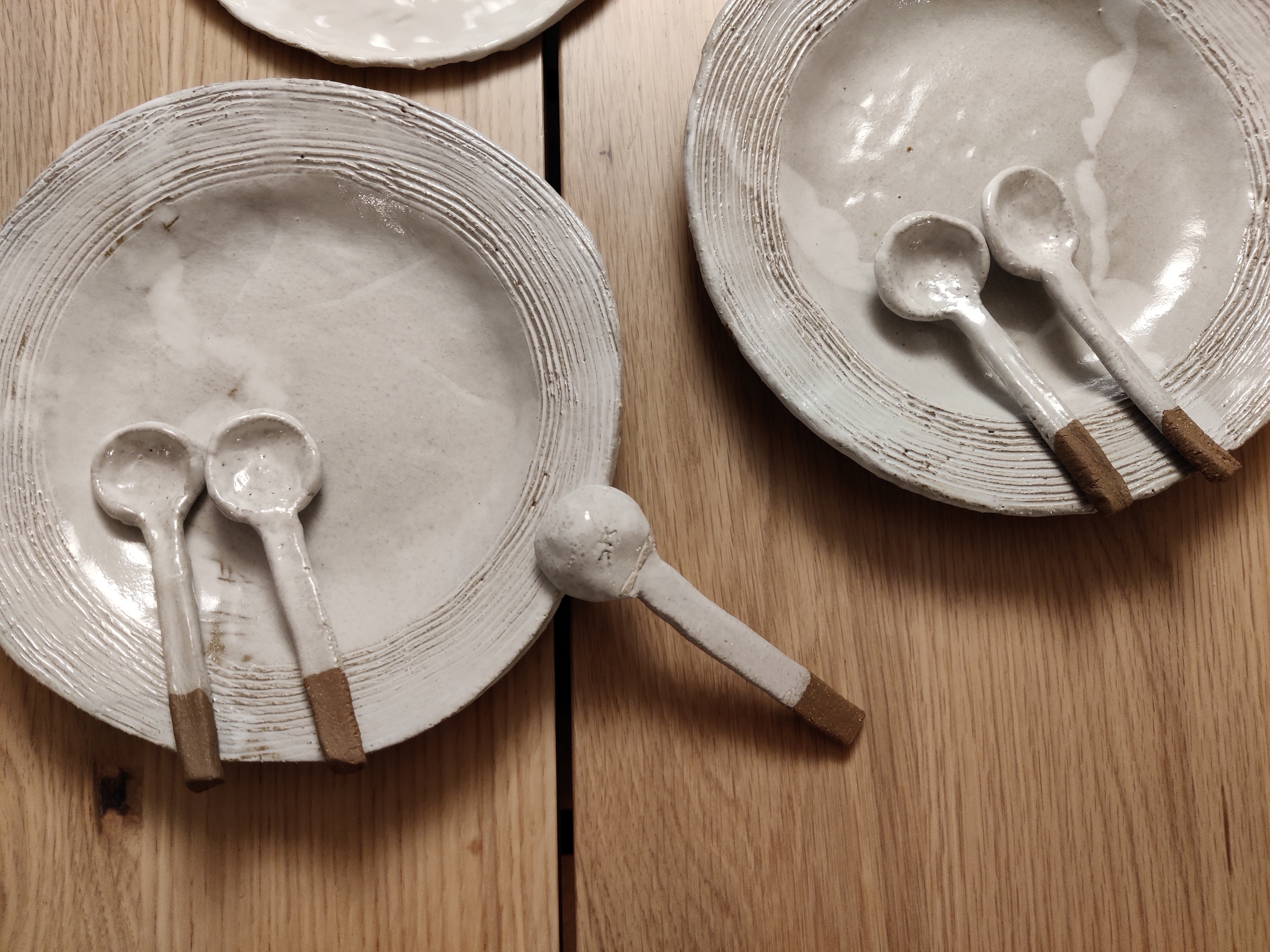 Lautaset ja lusikat Jaa Sulje Tämän kuvan tekstivastine: Savesta valmistettuja lautasia ja pikkulusikoita Petäjäveden keramiikka 3.7 Mt