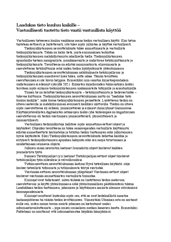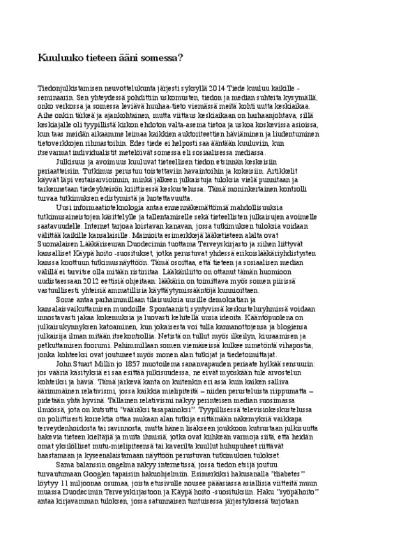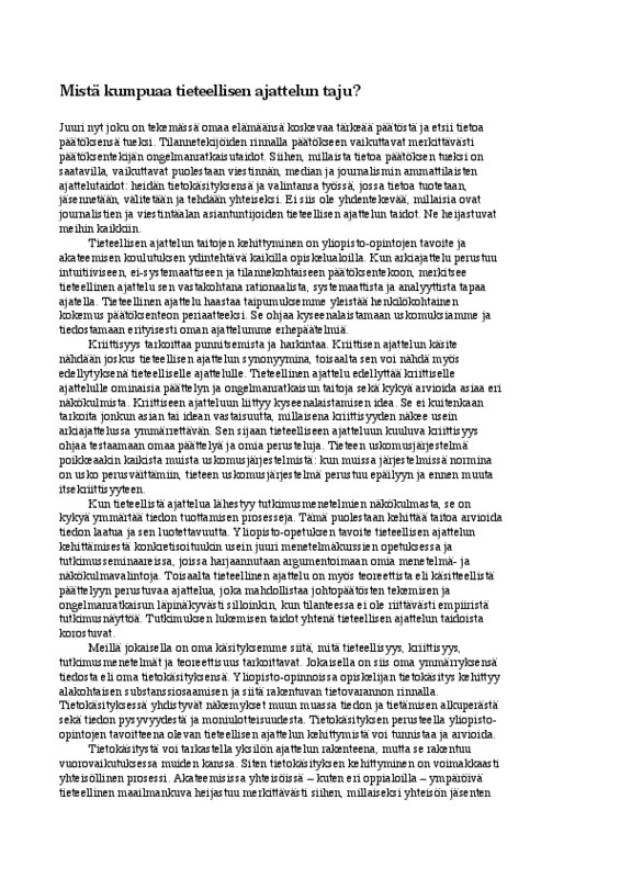 Kirjoita tekstisi siten, että lukija voi ymmärtää sen, vaikka ei tunnekaan aineistoja. Viittaa aineistoihin tarkoituksenmukaisella tavalla.