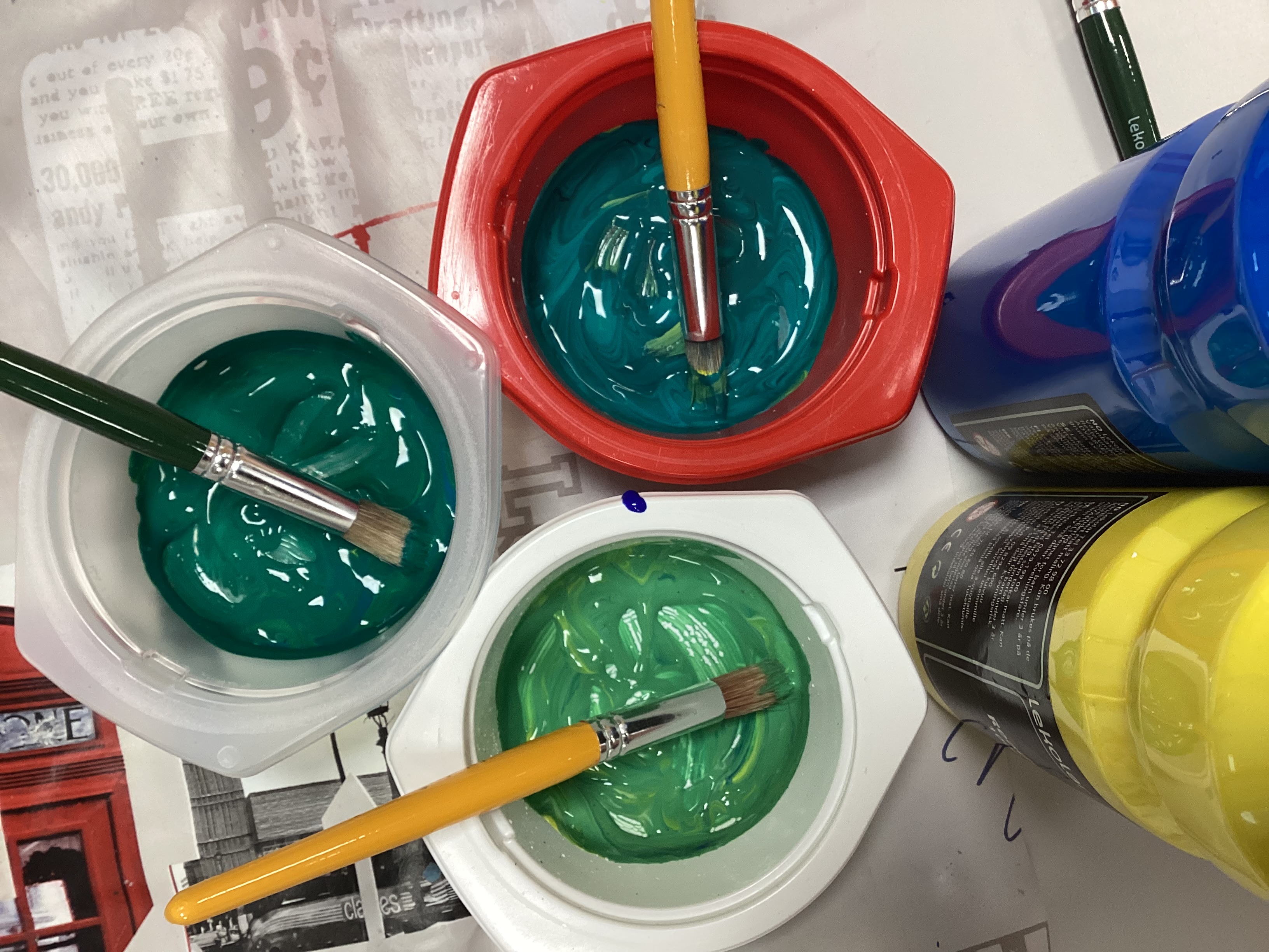 Painoimme käden kuvia ja väritimme väri muotoja