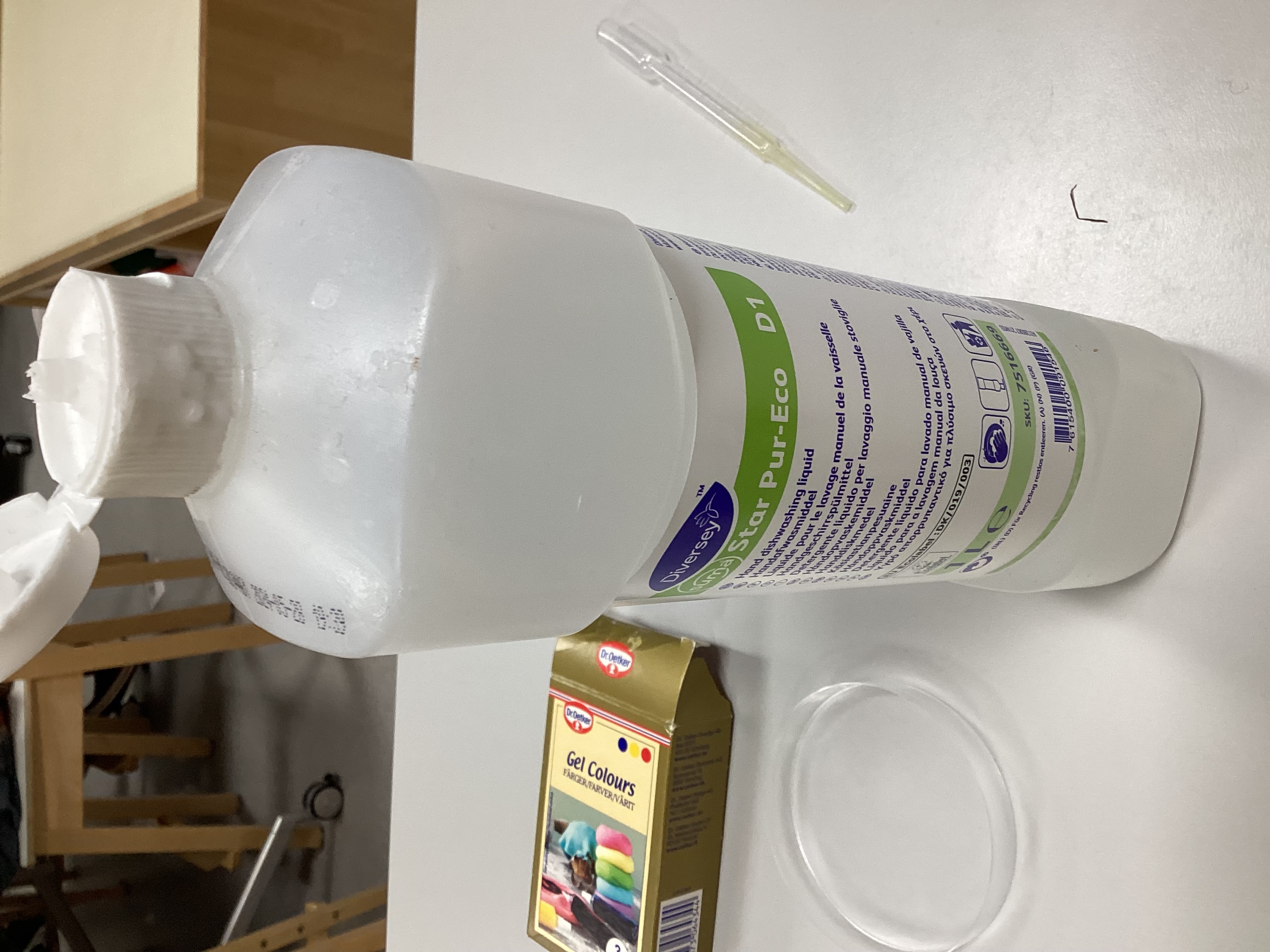 Toinen ryhmä teki tiedettä öljystä ja vedestä, petrimaljan ja pipettien avulla.