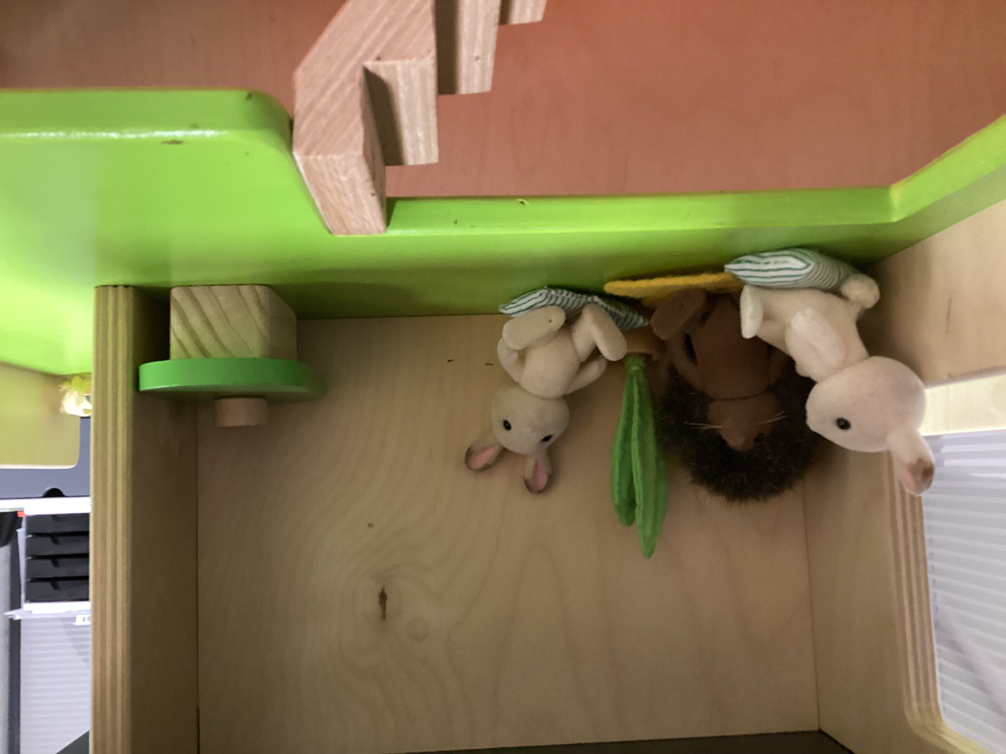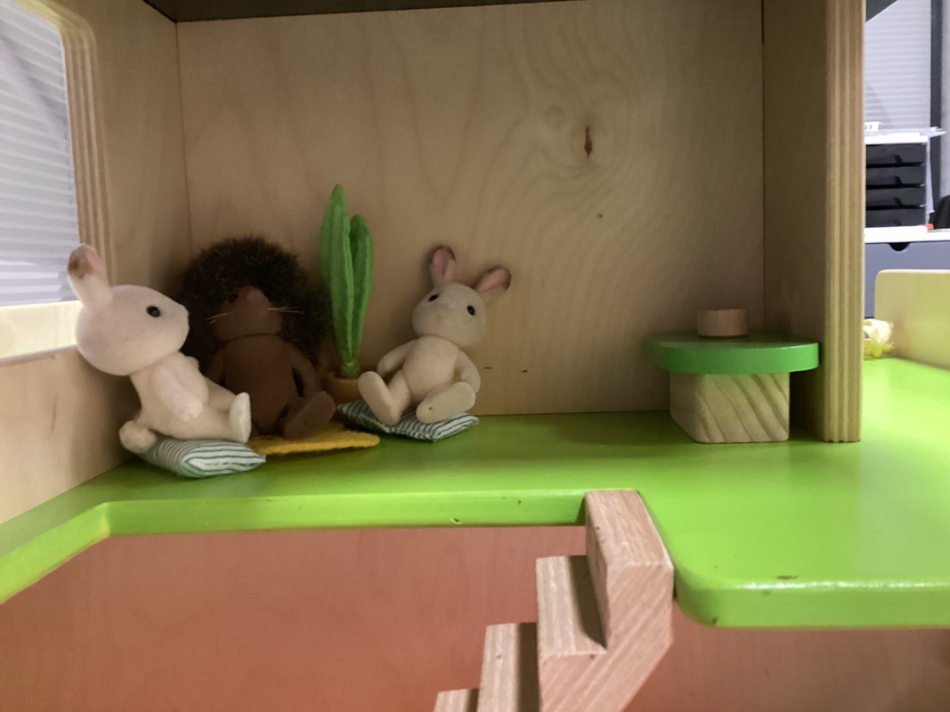 Yhdessä pienryhmässä leikittiin eläin hahmolla. Leikin teemana oli miten arka lapsi tai uusi lapsi pääsee mukaan leikkiin.