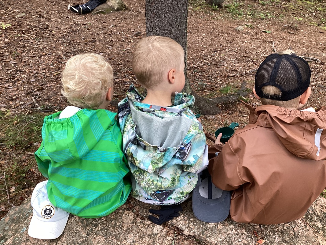 Perjantaina lähdimme retkelle pikkumetsään eskarin lähelle.Ilma oli ihana ja sammal tuoksui.Puolukoita löytyi syötäväksi ja orava veitikka oli myös ruokaillut siellä.Majoja rakenneltiin ja kivet houkuttelivat kiipeilemään.Eväitäkin syötiin.