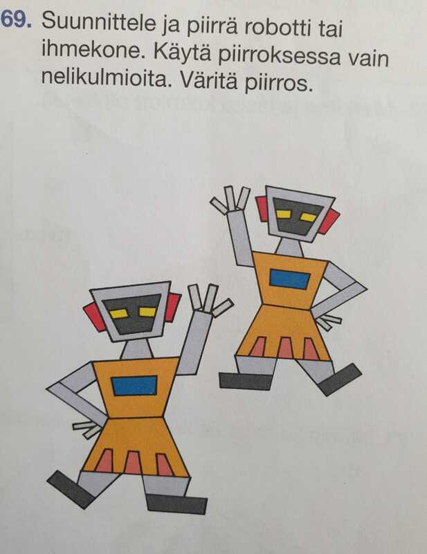 Viikko 4 Jaa Tehtävä Valitse yksi tehtävä, 34 TAI 69. Tarvitset viivoittimen! Muista käyttää vain kolmioita TAI nelikulmioita! Laskutaito 5, sivu 73 eläin.jpeg 113.1 kt Laskutaito 5, sivu 81 robotti.jpeg 155 kt
