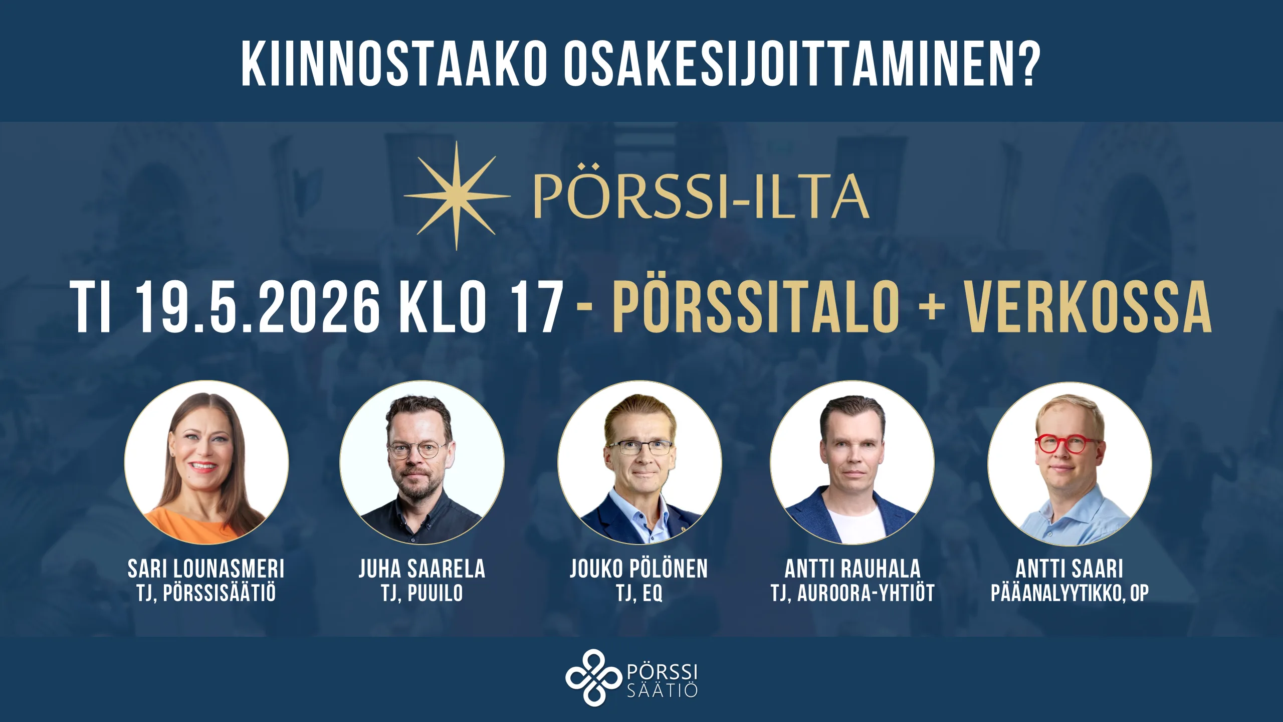Passimerkinnäksi Pörssi-ilta verkossa ti 19.5. 2026 klo 17.00-19.15
