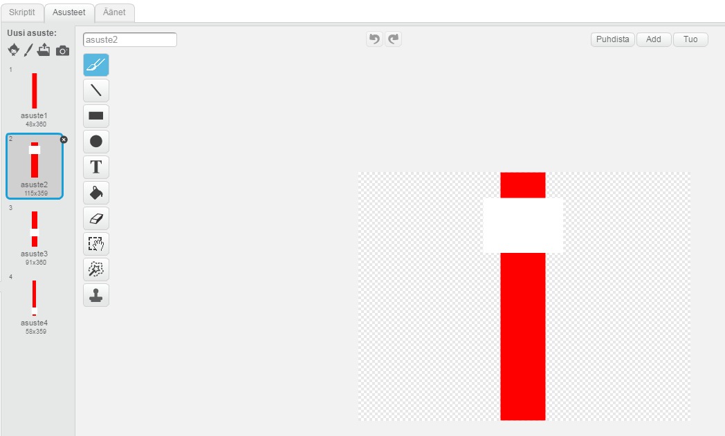 2. Luo liukuva palkki -hahmolle eri asusteita, joissa valkoinen aukko on eri kohdissa.