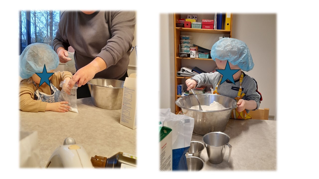 Keskiviikkona päästiin leipomaan metsäretken sijasta, sillä torstaina vietettiin isänpäivää lumpeissa :) Siniset tekivät piimäkakun ja punaiset tekivät kuorrutteen päälle :) Päästiin harjoittelemaan aineiden mittaamista, oman vuoron odottamista sekä sekoittamista :)
