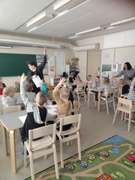 Tällä kertaa pääsimme Karhupentujen vieraiksi sisälle eskariin. Ensin teimme yhdessä eskaritehtävän, joka sujui tosi hienosti. Samalla harjoittelimme tärkeää viittaamisen taitoa. Sen jälkeen oli leikkien ja pelien vuoro. Lopuksi peukulla sai kertoa oliko eskarissa ollut kivaa vai ikävää/tylsää. Meillä oli yhdessä oikein mukava aamupäivä, vaikka kaikista tehtävän tekeminen ei ollutkaan kivaa.