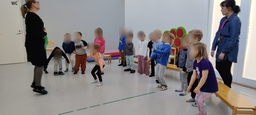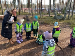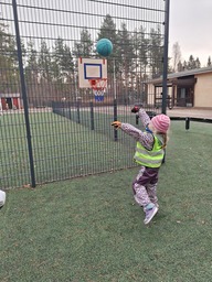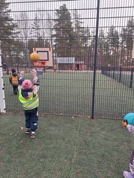 Tiistaina pitkin pihaa löytyi kevätarvoituksia: Mitä se on, jota ilmassa leijuu ja saa jotkut aivastelemaan? Mikä on verkkosilmäinen, ei toivottu vieras? Monenlaisia kevään merkkejä arvuuteltin. Jokaisella arvoituspisteellä oli jokin jumppaliike, joka piti tehdä ennen seuraavalle pisteelle siirtymistä. Pitkin pihaa juostiin reippaasti arvoitusten perässä, hiki saatiin pintaan.