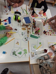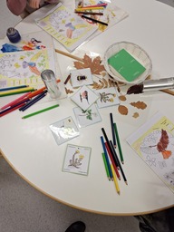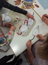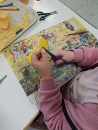Keskiviikkona aloitettiin leskenlehtien askartelu. Tarkkaa leikkaushommaa vaati pienien sievien kevätkukkien askartelu. Eläinten ystävät tekivät myös viiskaritehtäviä, jotka vaativat pitkäjännitteisyyttä.