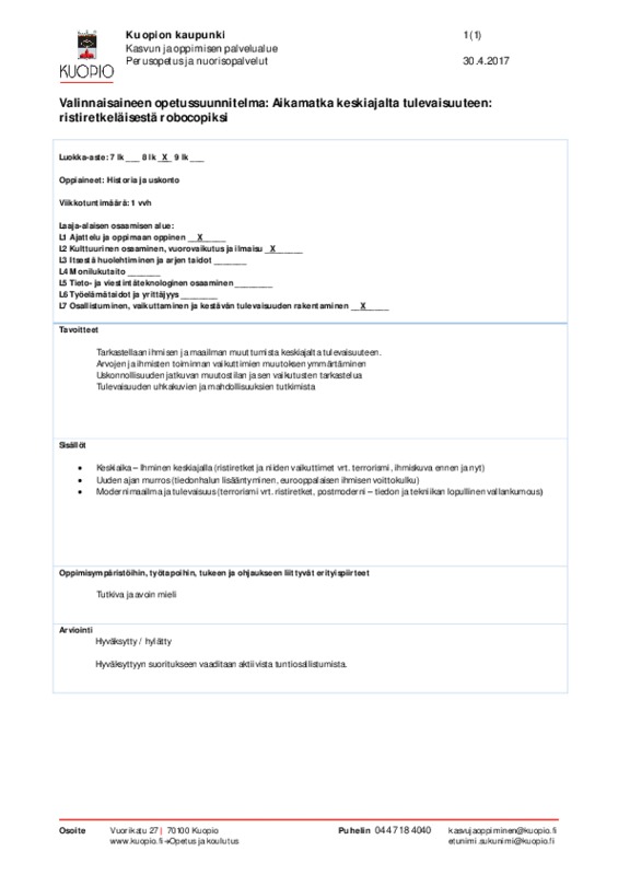 Aikamatka keskiajalta tulevaisuuteen ristiretkeläisestä robocopiksi.pdf Jaa Sulje Tekijä: Taina Vainio Tämän tiedoston tekstivastine: (tyhjä tekstivastine) Aikamatka keskiajalta tulevaisuuteen ristiretkeläisestä robocopiksi.pdf 57.9 kt