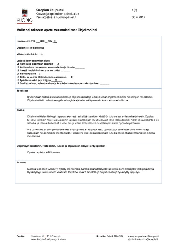Peliohjelmointi.pdf Jaa Sulje Tekijä: Taina Vainio Tämän tiedoston tekstivastine: (tyhjä tekstivastine) Ohjelmointi.pdf 54.3 kt