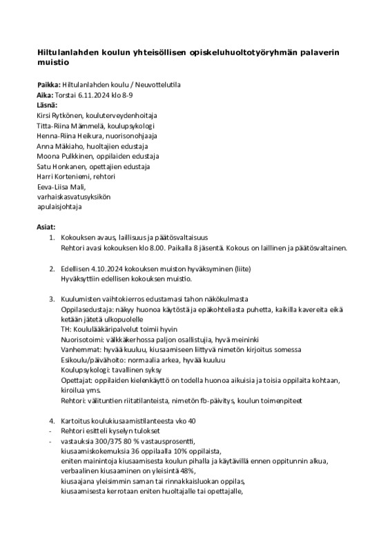 Yhteisöllinen ohr muistio 6.11.2024.pdf Jaa Sulje Tämän tiedoston tekstivastine: (tyhjä tekstivastine) Yhteisöllinen ohr muistio 6.11.2024.pdf 107 kt