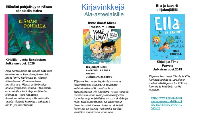kuulostaako kivalle jos ilmasto ei meekään pilalle.