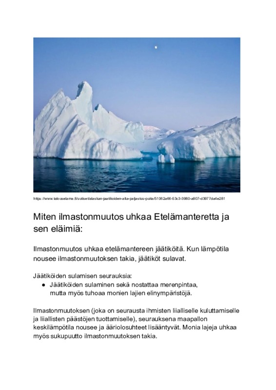 Etelämantereelta jää sulaa kovaa vauhtia jääkarhut itkee kun ei saa enää jäällä vouhkia.