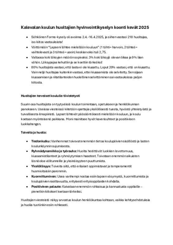 Kalevalan koulun huoltajien hyvinvointikyselyn koonti kevät 2025.pdf Jaa Sulje Tämän tiedoston tekstivastine: (tyhjä tekstivastine) Kalevalan koulun huoltajien hyvinvointikyselyn koonti kevät 2025.pdf 58.2 kt