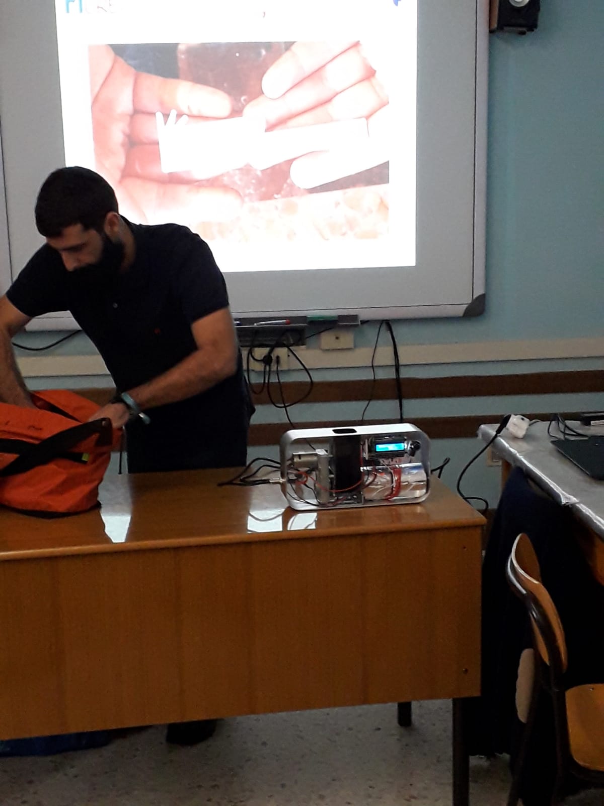 Second part (practical part) : the students take plastic (Pet) cups, crumble them to create a plastic wire for the 3 D printer.
