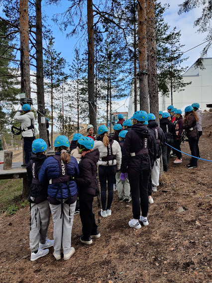 3. päivä 27.4: Keskiviikkona lähdimme klo 9 bussilla Riistavedeltä kohti Leppävirran seikkailupuistoa. Saavuimme kohteeseen n. klo 10.30. Puistossa oli eri vaikeusasteisia ratoja, joista pystyit valitsemaan itsellesi sopivimman. Monet tykkäsivät puistosta, vaikka sää olikin aika kylmä. Onneksi välillä sai mennä lämmittelemään sisälle.