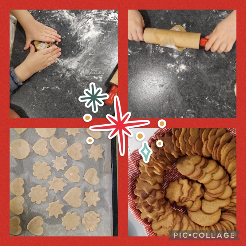 Kun paikat oli saatu siivottua ja Tontut kipaisseet piiloon, alkoi piparien leipominen, joka oli yhden lapsen toive!