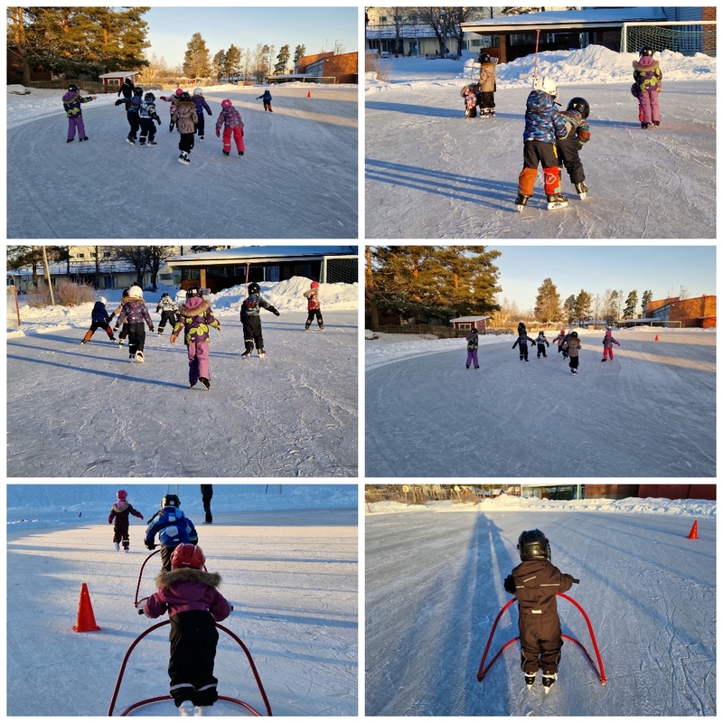 Luistelussa Sari opetti tällä kertaa liukumista, jarruttamista ja kuinka tehdään luistellessa makkaroita. Liukuharjoituksia lapset tekivät myös parityönä. Osa jatkoi vielä luistelun perustaitojen harjoittelua,jossa apuna sai käyttää tukikelkkaa. Hienoa on ollut huomata,kuinka harjoittelun myötä lasten taidot ovat kehittyneet.🤗
