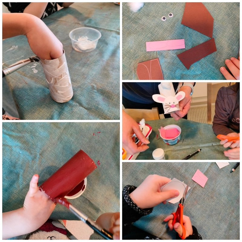Harjoittelimme kädentaidoissa pupun maalaamista, leikkaamista ja liimaamista sekä sommittelua ja hahmottamista, että mihin kaikki osat liimataan.