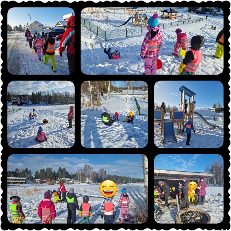 Lähdettiin jälleen viettämään aamupäivää merirosvopuistoon sekä laskettelemaan viereiseen mäkeen. Samat leikit jatkuivat eilisestä koko porukan voimin. Hienoja kaveritaitoja opittu.
