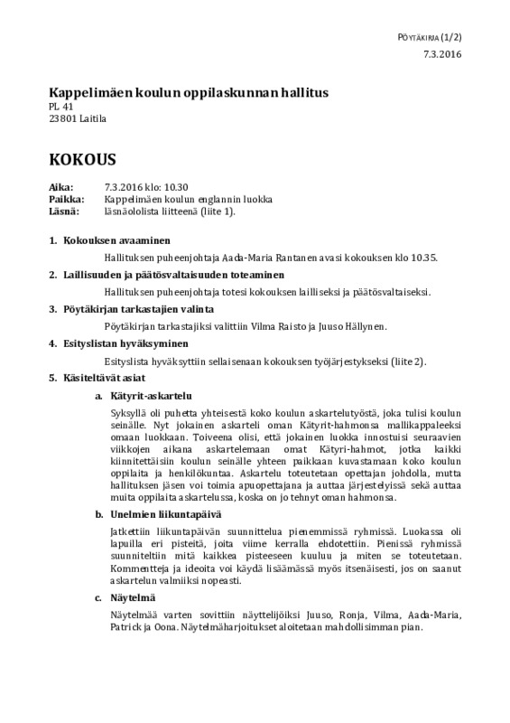 4/2016 7.3.2016 Jaa Sulje Tämän tiedoston tekstivastine: (tyhjä tekstivastine) pöytäkirja 4 2016.pdf 66.4 kt