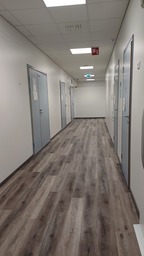 josta osa näkyy käytävälle ja osa vasta kävellessä kulman ohi.