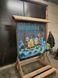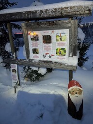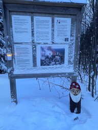 Tämä tulee tienvarteen Väisälänmäki kyltin oheen. Tauluun jouluinen kuvitus ja teksti: Väisälänmäen tonttupolku. Taulussa kuvituksena tonttu/tonttuja sekä jouluista taustaa, esim lumista metsää tai värimaailma muuten talvinen, jos tausta on abstrakti. Taustaan voi ottaa vaikutteita myös Väisälänmäestä, mäkiä, näkötorni tms, mutta ei ole pakko. Yksinkertaisempikin tausta riittää.