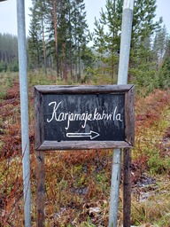Tämä tulee polun varteen karjamajakahvilan liepeille. Näillä näkymin kahvilan parkkipaikalle. Parkkipaikka on mäen päällä, peltojen ympäröimänä. Voi ottaa taustaan vaikutteita ympäristöstä. Taulussa tonttu/tonttuja. Tähän ei tekstiä.
