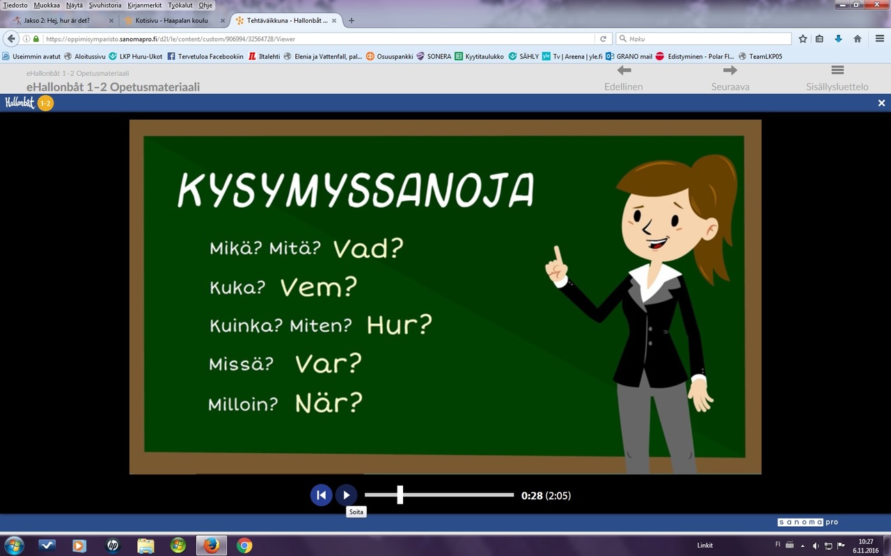 Jakso 1: Hej, hur är det? Jaa Kuulumisten kysyminen, henkilön haastattelu https://quizlet.com/148865808/hallonbat-1-2-bildlexikon-1-flash-cards/ https://quizlet.com/160374209/hallonbat-1-2-dialog-1-flash-cards/ Numerot 0-100 https://quizlet.com/148865557/hallonbat-1-2-nummer-s-20-100-flash-cards/ Viikonpäivät https://quizlet.com/160465450/hallonbat-viikonpaivat-flash-cards/