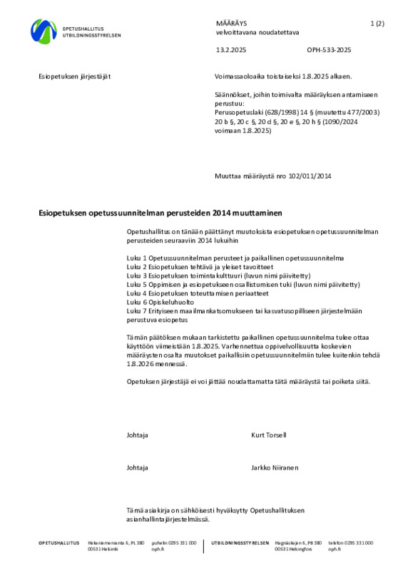 Muutosmääräys 20250213 Esiopetuksen_opetussuunnitelman_perusteiden_2014_muuttaminen.pdf Jaa Sulje Tämän tiedoston tekstivastine: (tyhjä tekstivastine) Muutosmääräys 20250213 Esiopetuksen_opetussuunnitelman_perusteiden_2014_muuttaminen.pdf 66.5 kt
