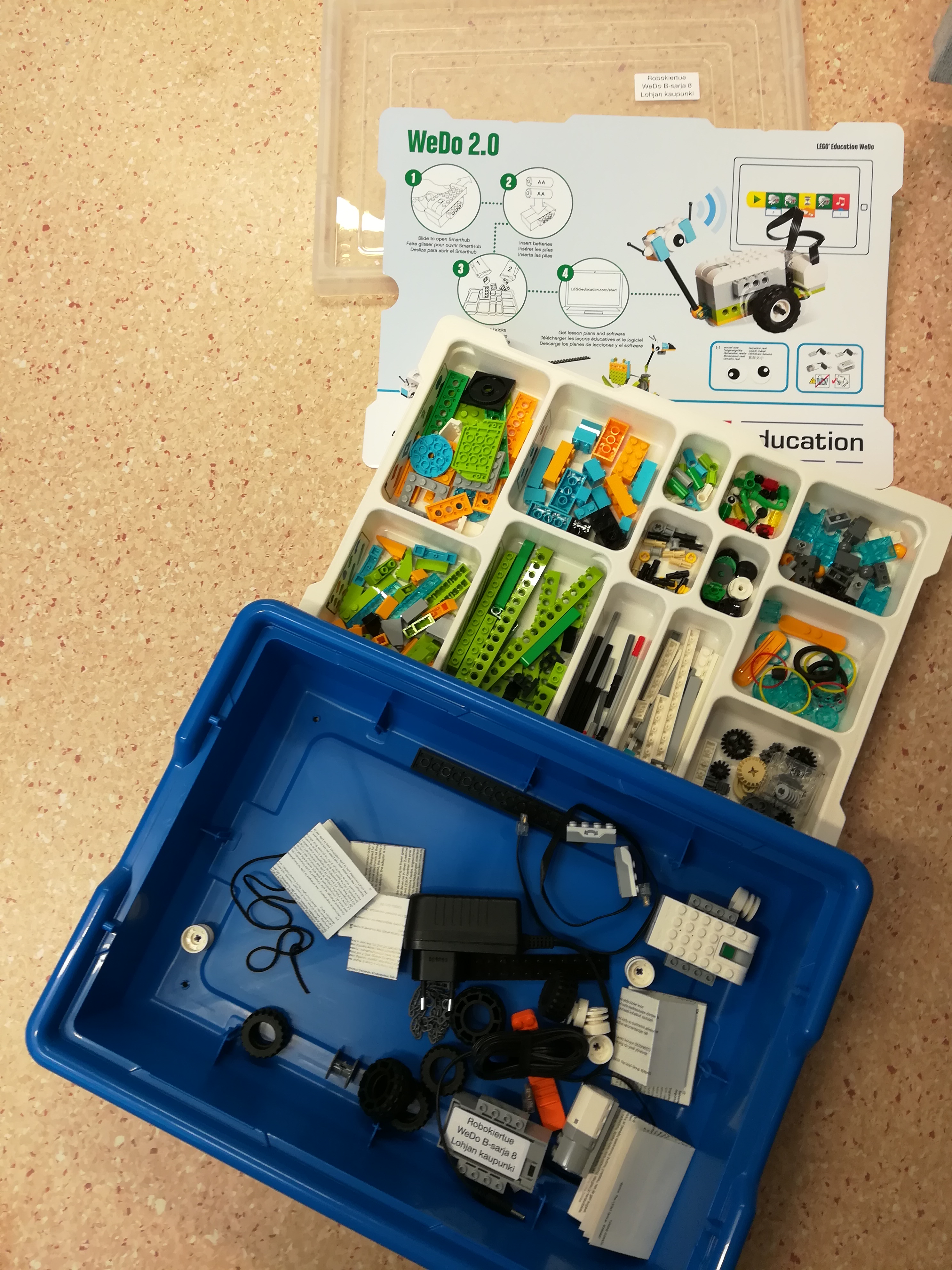 Jakaminen Sulje WeDo -pakkauksen sisällöt on lueteltuna laatikon pahvilehtisen nurjalla puolella. Varatkaa robottien käytön päätteeksi riittävästi aikaa laatikoiden järjestämiseen, jotta kaikkien yhteiset robotit pysyvät käyttökuntoisina! Pysyvä osoite https://peda.net/id/cd4d0becbce Pysyvä tiedoston latausosoite https://peda.net/id/cd4d0becbce:file/download/670b95afd85eab69c9e357d777f9c7c984905268/IMG_20190812_134208.jpg Jakaminen muihin palveluihin Share this page to Facebook QR-koodi