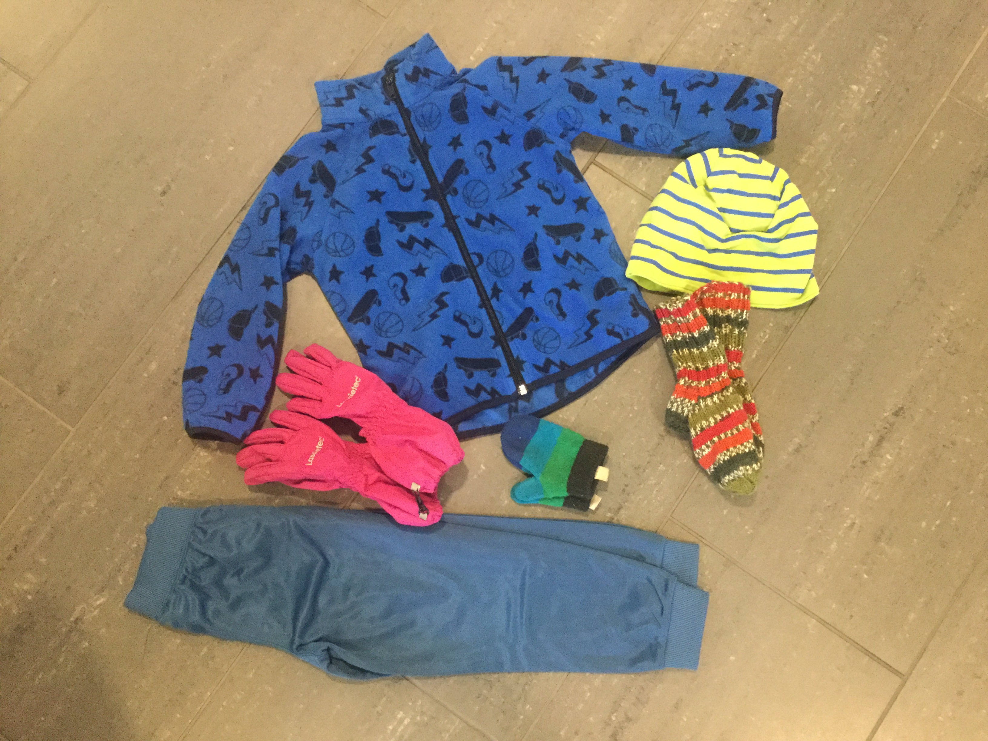 Säät vaihtelee, niin kassista olisi hyvä löytää lämmintä päälle. Välillä voi olla tarve myös saada kuivat käsineet kesken ulkoilun käteen.