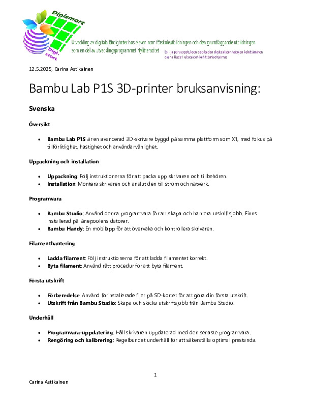 Bambu Lab P1S 3D-tulostin - Bambu Lab P1S 3D-printer Jaa Bambu Lab P1S 3D-tulostin - Bambu Lab P1S 3D-printer Bambu Lab P1S 3D-tulostin - Bambu Lab P1S 3D-printer.pdf 142.9 kt 1 kommenttia