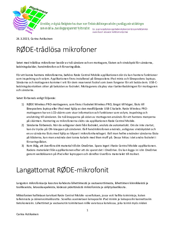 RØDE langaton mikrofoni - RØDE trådlös mikrofon Jaa RØDE langaton mikrofoni - RØDE trådlös mikrofon RØDE_mikrofonit-mikrofoner.pdf 120.8 kt 1 kommenttia