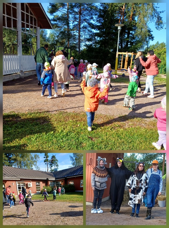 HÀmÀhÀkki oli kudonnut niin hienoja verkkoja metsÀssÀ. Maisteltiin mustikoita ja puolukoita. Laulettiin hÀmÀhÀkki laulu ja Karhu nukkuu. Jotain pientÀ ruskaa on jo havaittavissa.