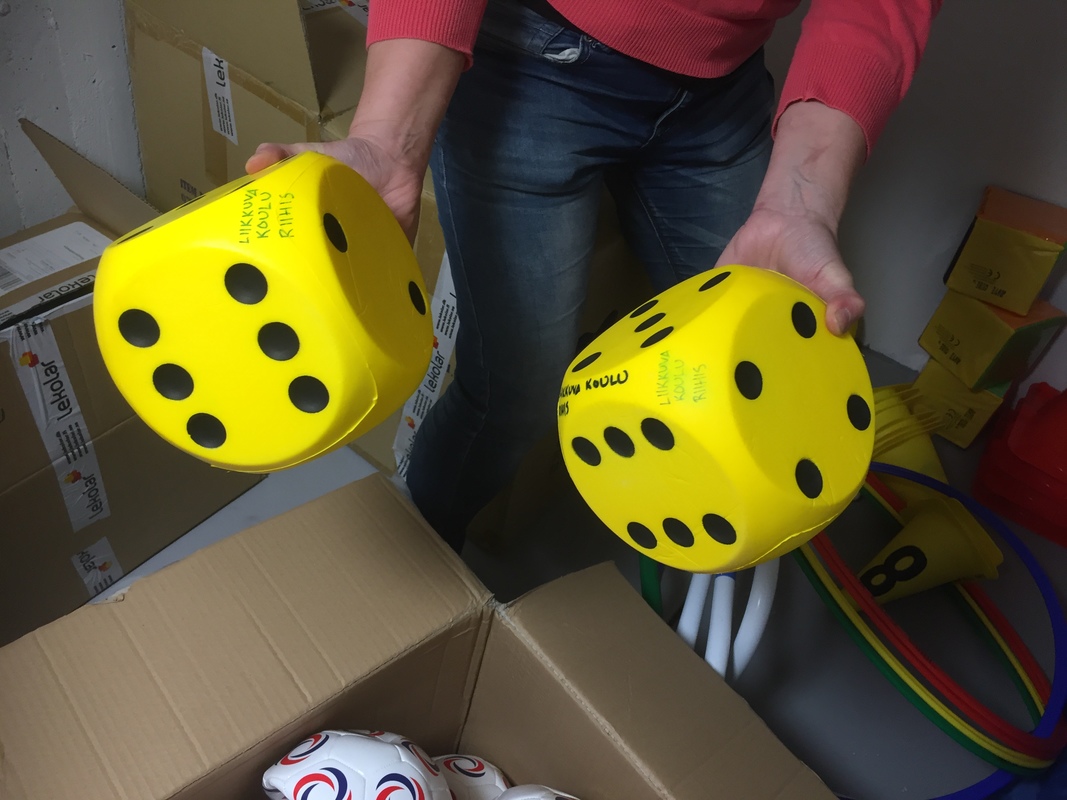 Alakoulun pääoven luona olevan pienen ovat takaa löytyviä liikuntavälineitä