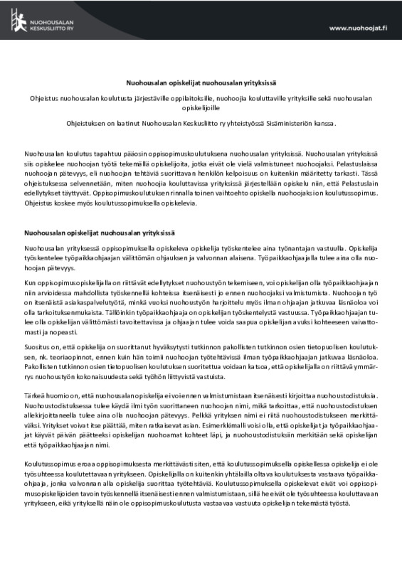 Ohjeistus nuohoojaa kouluttavalle yritykselle Ohjeistus Nuohousalan opiskelijat nuohousalan yrityksissä.pdf 110.1 kt 0 kommenttia