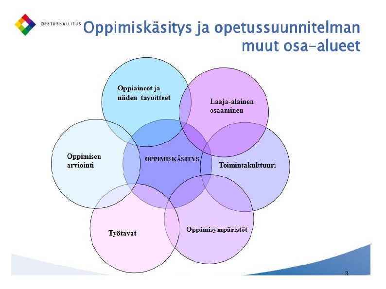 Opetussuunnitelman perusteet on laadittu perustuen oppimiskäsitykseen, jonka mukaan oppilas on aktiivinen toimija. Hän oppii asettamaan tavoitteita ja ratkaisemaan ongelmia sekä itsenäisesti että yhdessä muiden kanssa. Oppiminen on erottamaton osa yksilön ihmisenä kasvua ja yhteisön hyvän elämän rakentamista. Kieli, kehollisuus ja eri aistien käyttö ovat ajattelun ja oppimisen kannalta olennaisia. Uusien tietojen ja taitojen oppimisen rinnalla oppilas oppii reflektoimaan oppimistaan, kokemuksiaan ja tunteitaan. Myönteiset tunnekokemukset, oppimisen ilo ja uutta luova toiminta edistävät oppimista ja innostavat kehittämään omaa osaamista.