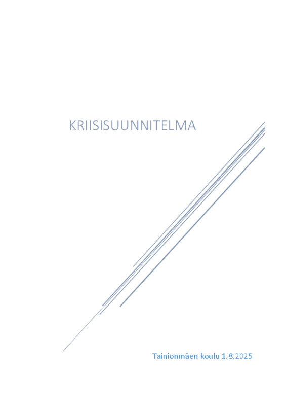 Kriisisuunnitelma (LIITE 3, päivitetty 5.10.2025) Jaa Sulje Tämän tiedoston tekstivastine: (tyhjä tekstivastine) Kriisisuunnitelma 2025.pdf 423.9 kt