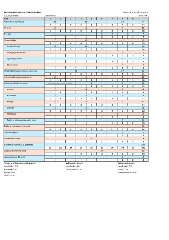 Perusopetuksen tuntijako (LIITE 11, päivitetty 7.10.2025)